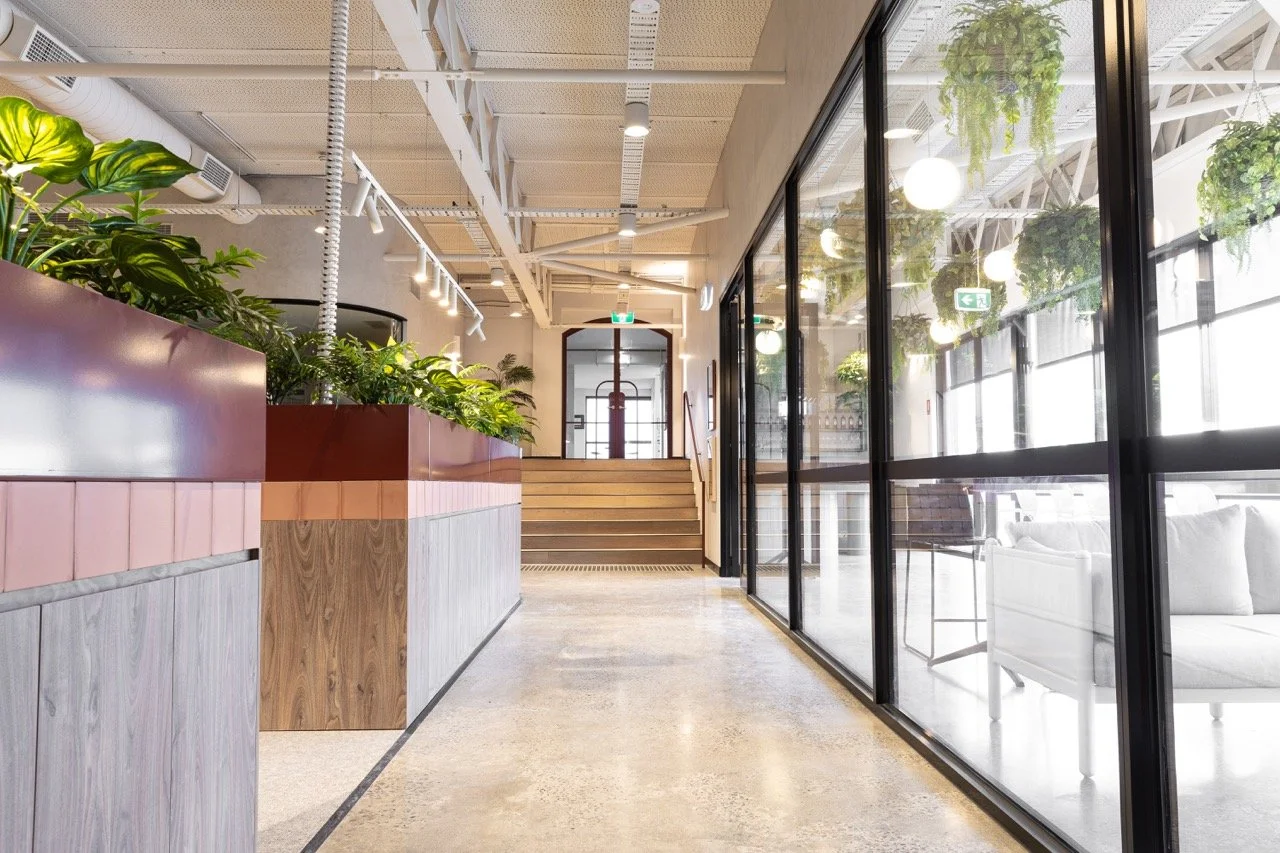 Carman’s state-of-the-art headquarters occupies three levels of a converted chocolate factory in Huntingdale, delivering 5,000sqm of workplace, wellness and specialised operational spaces. The fitout incorporates the Carman’s Kitchen Conservatory, Learning Hub and Innovation Lab, alongside a gym, yoga room, sauna, recreation zones and breakout areas. A full commercial kitchen with an onsite chef, a salon and massage room, and meeting suites across two levels were integrated within the existing structure while respecting the building’s industrial character.